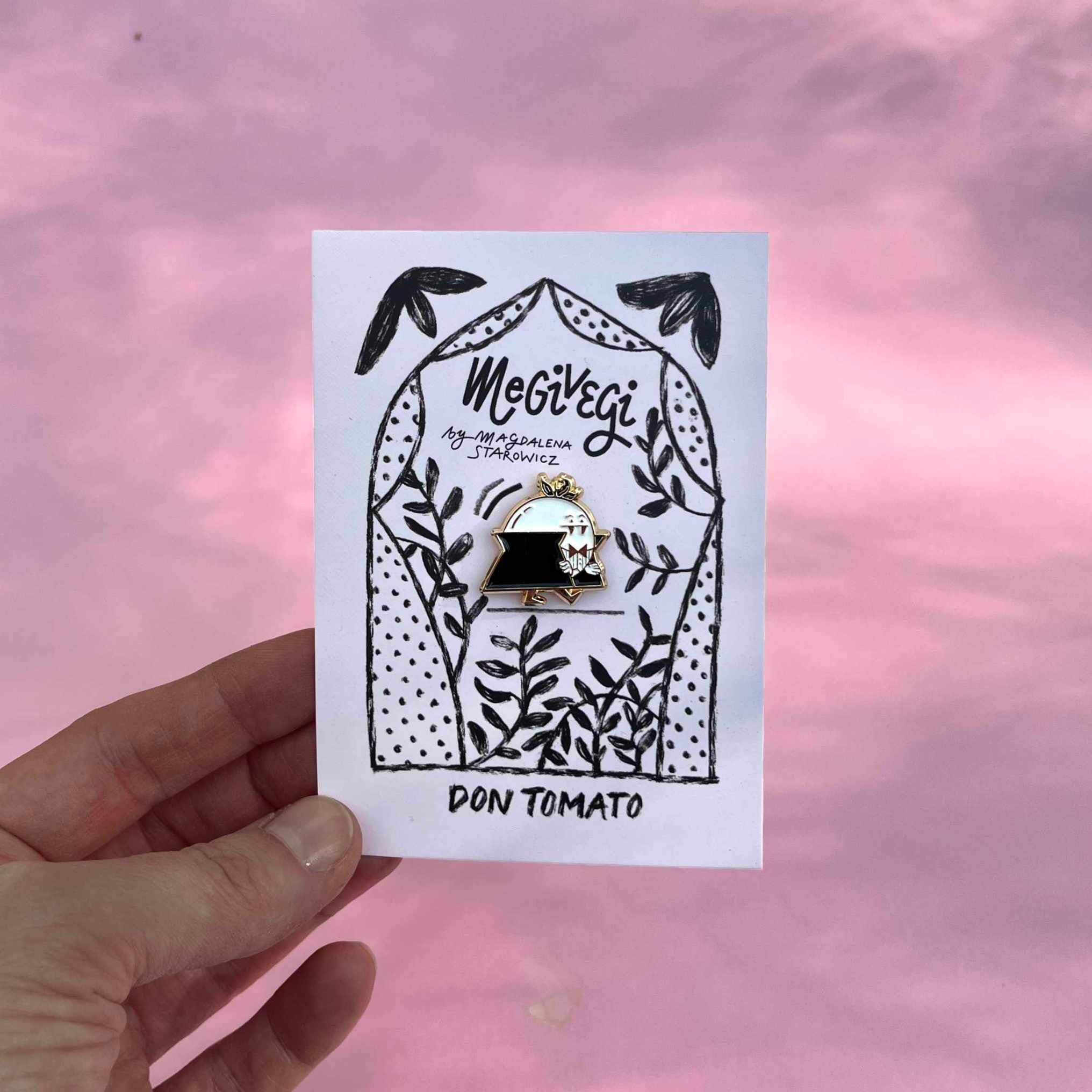Stylowa przypinka emaliowana w kształcie pomidora, wykonana z najwyższej jakości materiałów.