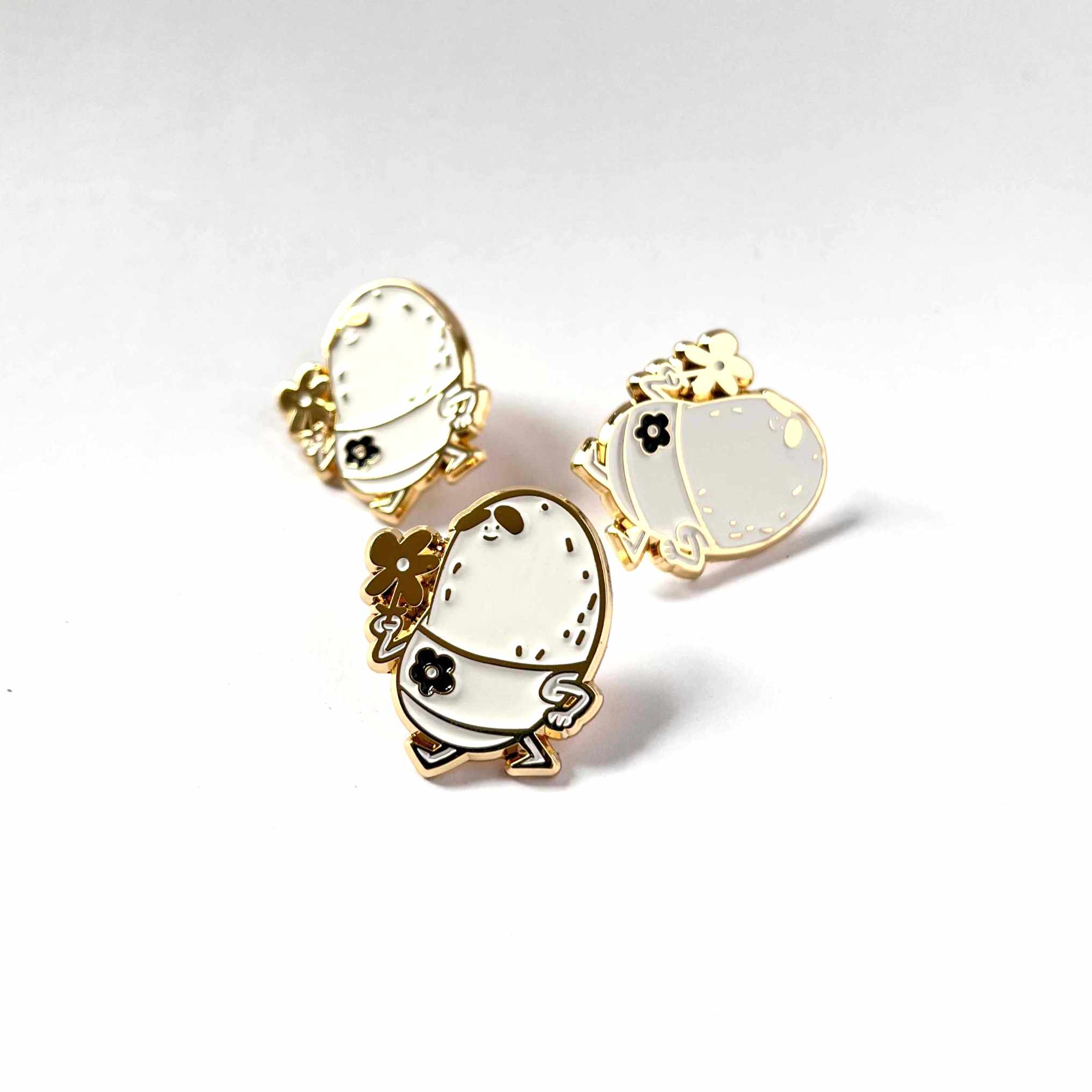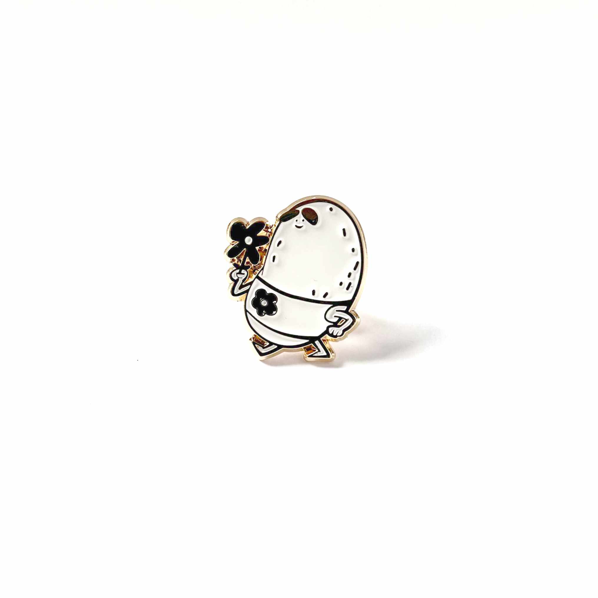 A stylish potato-shaped enamel pin made from high-quality materials.